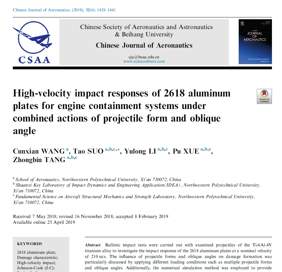 در این مسئله جنس پلیت از آلومینوم 2618 است و جنس پرتابه از تیتانیوم TI-6AL-4V است