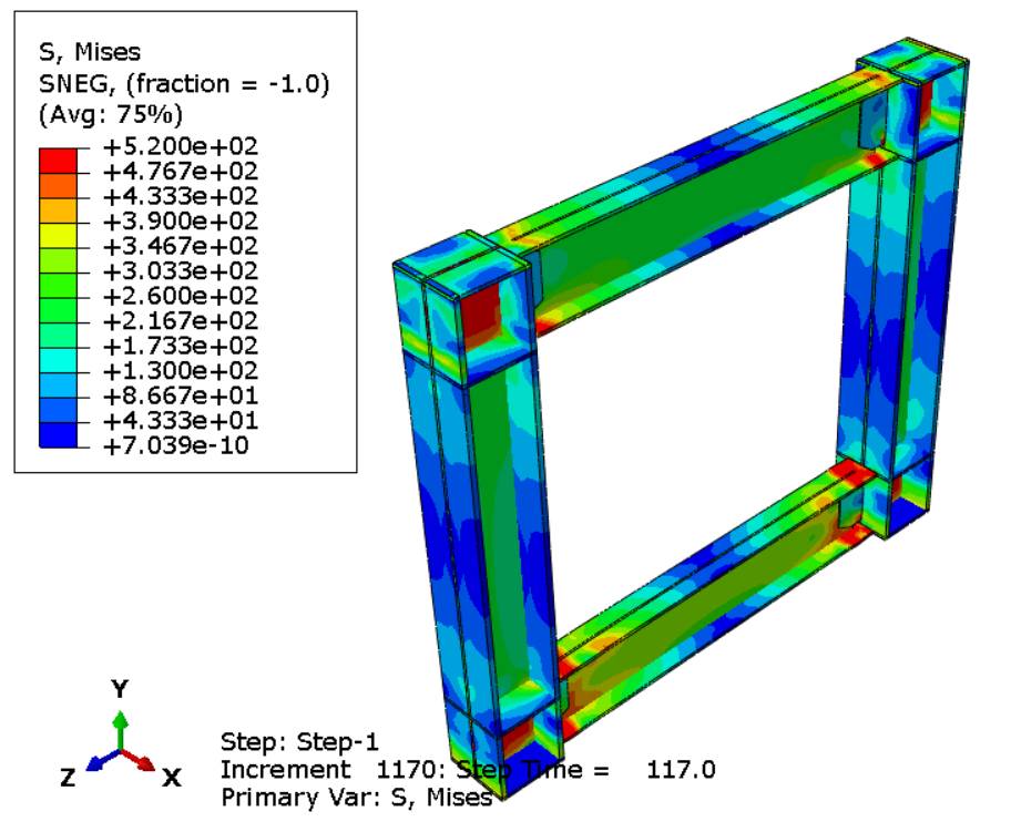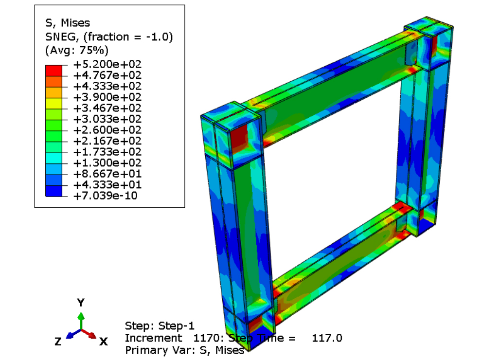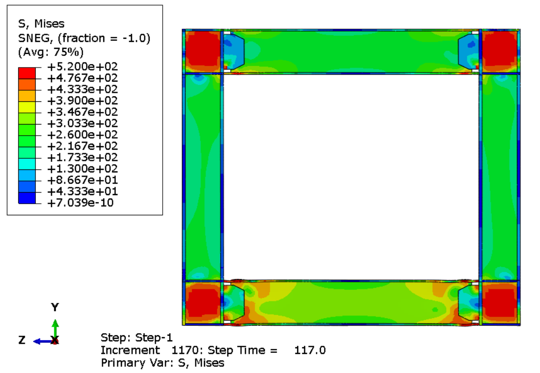 در این تصاویر می تونید تغییر شکل قاب خمشی تحت بارگذاری سیکلی را در نرم افزار آباکوس مشاهده کنید